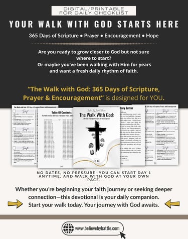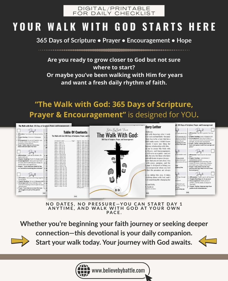 This devotional is completely free because we believe growth should be accessible to everyone. Whether you're battling through a tough season or stepping into a new chapter, let these pages guide you, uplift you, and remind you that God is with you in every step and every struggle.